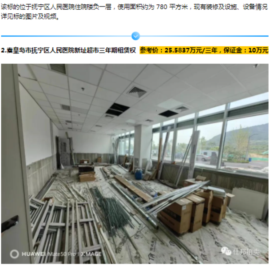 秦皇岛市抚宁区人民医院新址食堂、超市三年期租赁权公开拍卖