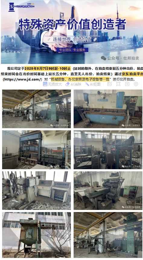 降价啦!机械设备、办公家具及电子设备等一批公开拍卖